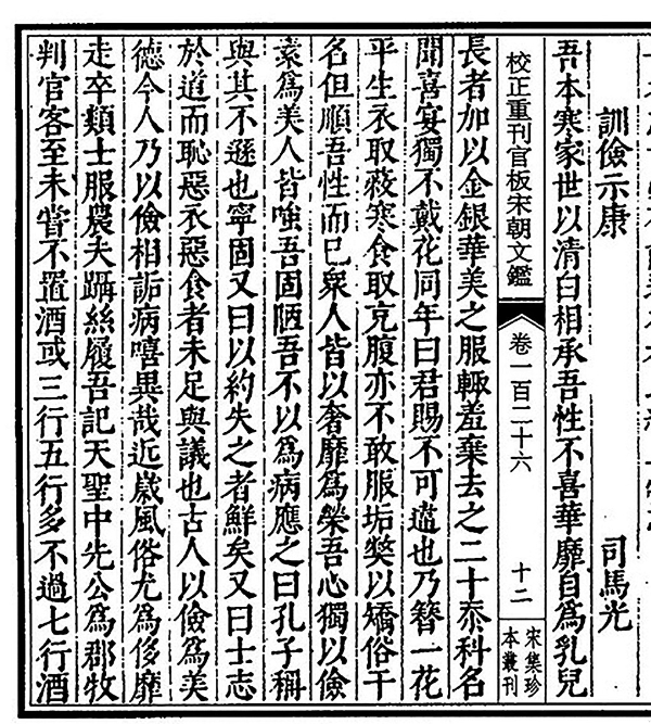 《宋朝文鉴》所收《训俭示康》
