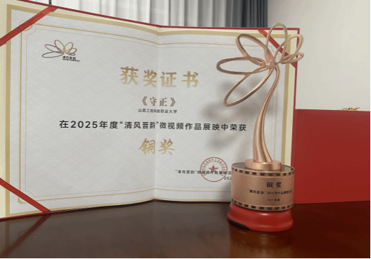 1月26日,山西省纪委监委宣传部主办的2025年度“清风晋韵”微视频微短剧作品展映活动结果揭晓,我校纪委选送的原创作品《守正》在全省2200余件参赛作品中脱颖而出,荣获微视频类铜奖。